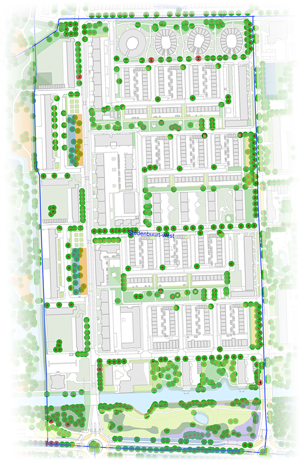 Als test kijken we naar een norm van van 20 bomen per hectare en 10 oude bomen (> 50 jaar) per hectare. Dat zou een mooi streven kunnen zijn om dat per buurt te proberen te halen.