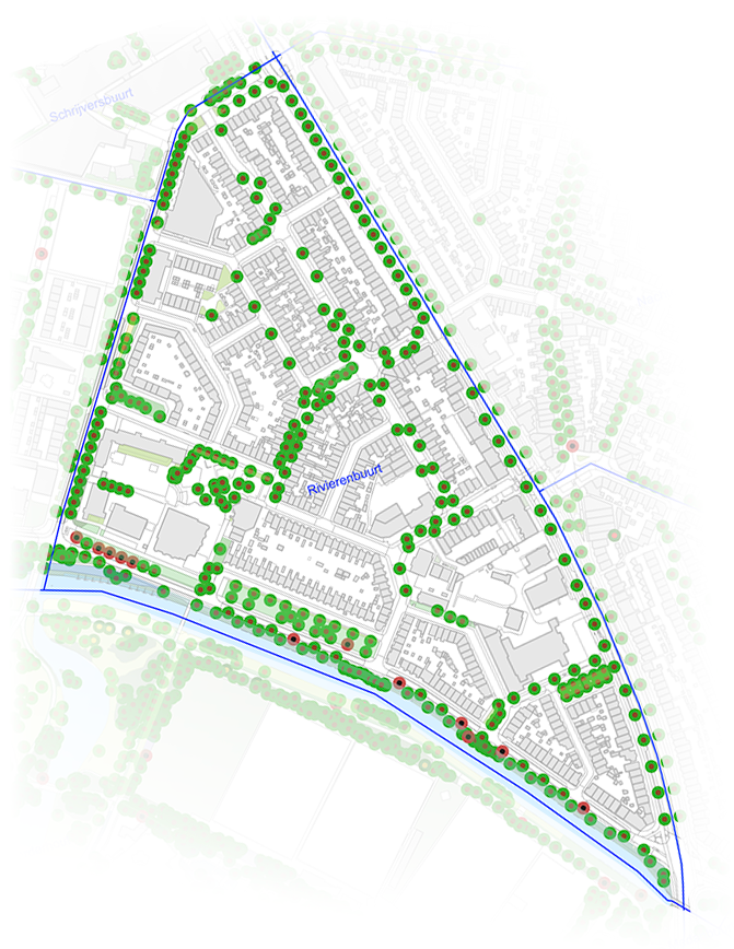 Als test kijken we naar een norm van van 20 bomen per hectare en 10 oude bomen (> 50 jaar) per hectare. Dat zou een mooi streven kunnen zijn om dat per buurt te proberen te halen.