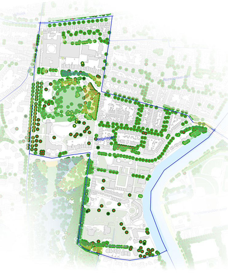 Als test kijken we naar een norm van van 20 bomen per hectare en 10 oude bomen (> 50 jaar) per hectare. Dat zou een mooi streven kunnen zijn om dat per buurt te proberen te halen.