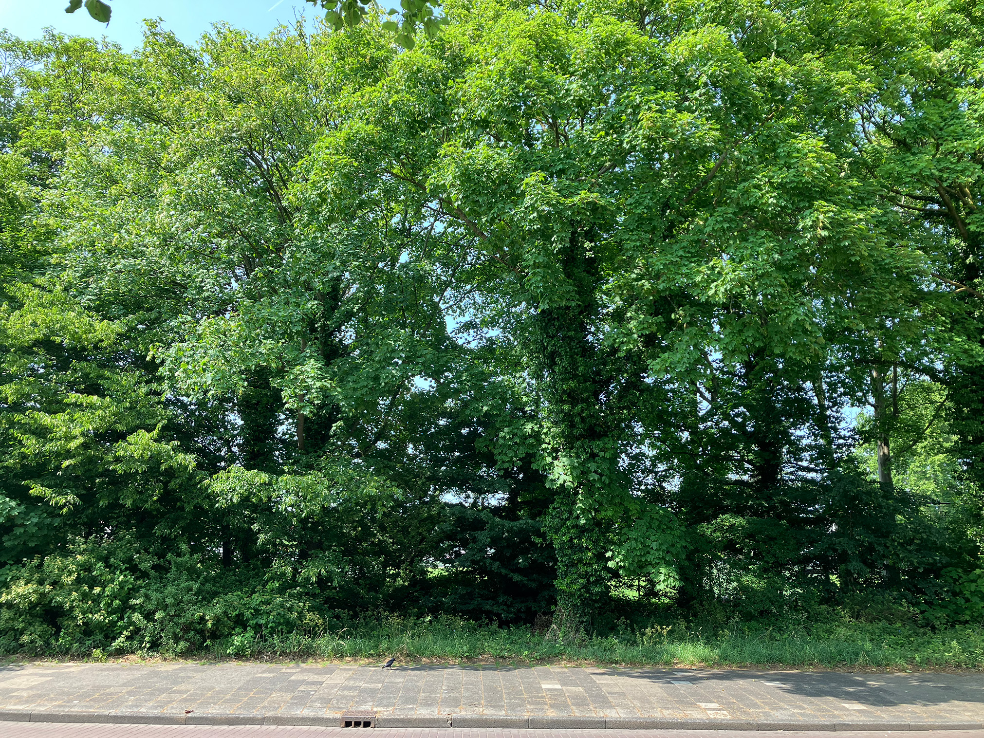 In het voorstel van B&W staat letterlijk: "Aan de Planetenlaan bevindt zich nu een onbeheerd groenvak met bossage die is gaan uitgroeien (in vaktermen opschot)." Voor zowel scenario 1 als 2 zal deze gedeeltelijk gecompenseerd moeten worden.
