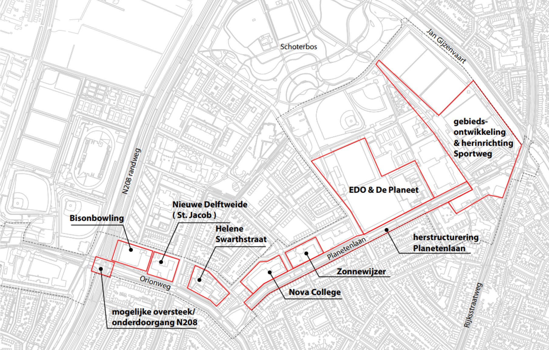 Het gebied rond de Orionweg en de Planetenlaan is de komende jaren volop in ontwikkeling. Er komen ongeveer 500 nieuwe woningen, winkels en voorzieningen zoals een nieuw zwembad, een woonzorginstelling, een gezondheidscentrum en een supermarkt.