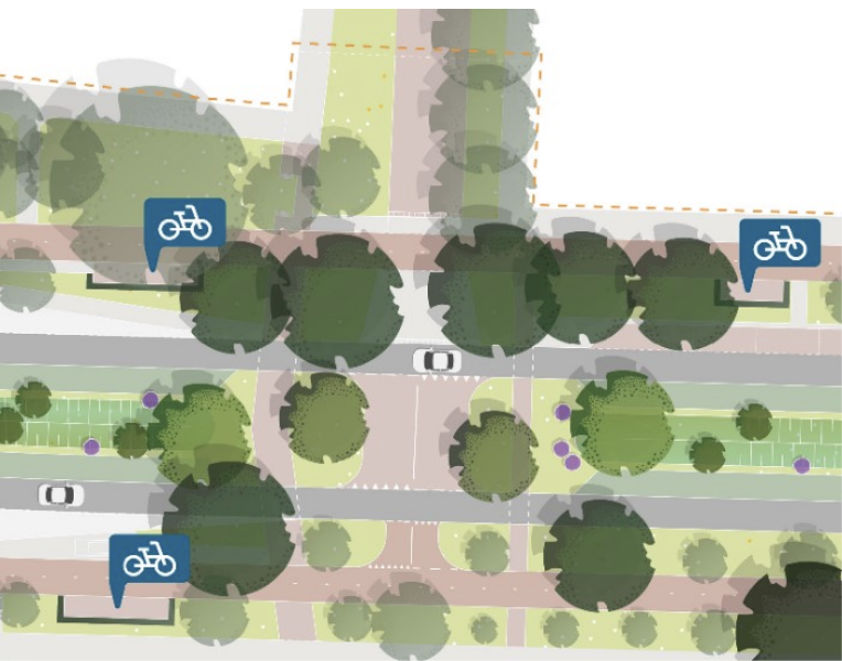 • De bestaande laanstructuur met grote bomen blijft behouden en wordt, met name in het meest noordelijke deel, aangevuld.