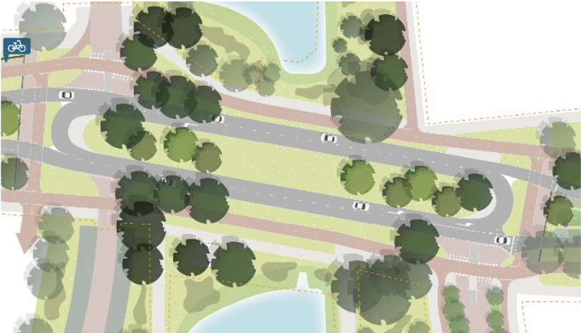 Wat ons betreft mag de middenberm beplant worden met veel bomen.